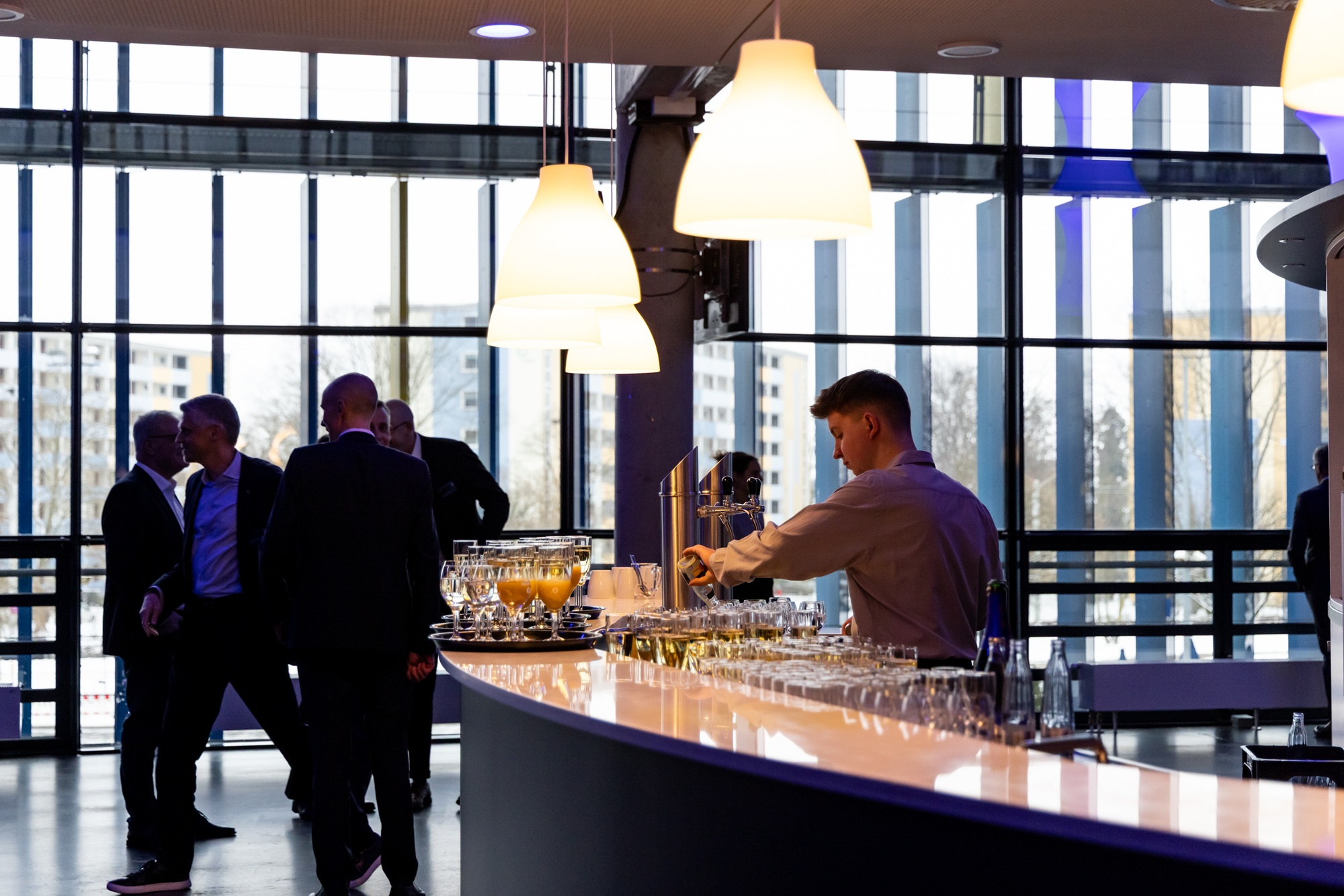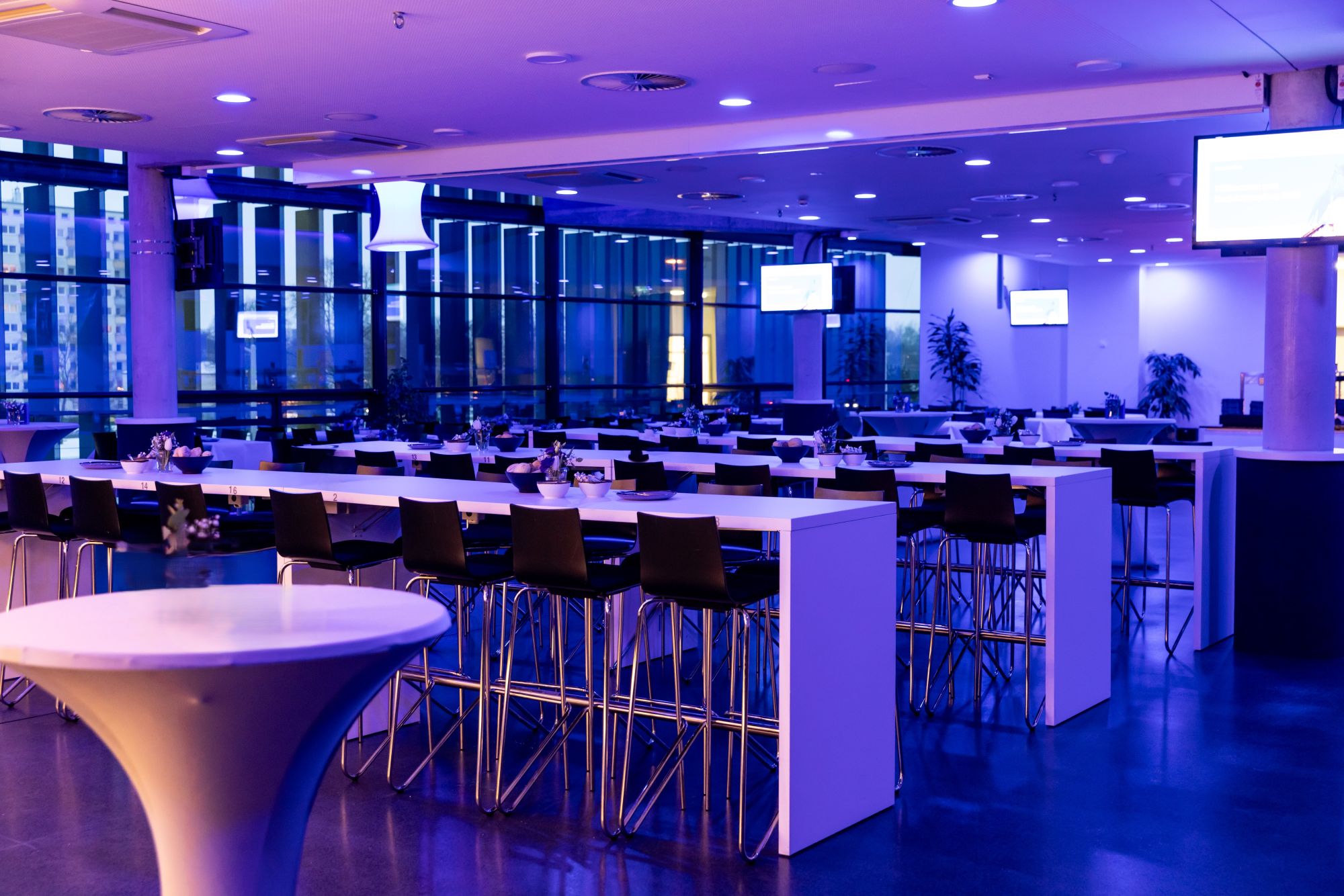 Modern, spacious and multifunctional. On three levels, the business area of the Eintracht-Stadion offers a wide range of space options for your conference, sales or staff event for up to 1,500 people. Your guests have direct access to the stands from every level. Use the stadium video boards for a company presentation or an image film and welcome your guests under floodlights at a venue that has been home to passion and emotion for over 100 years. Of course, we are at your side to answer any questions you may have about event and conference technology and will support you from the planning to the realization of your event!